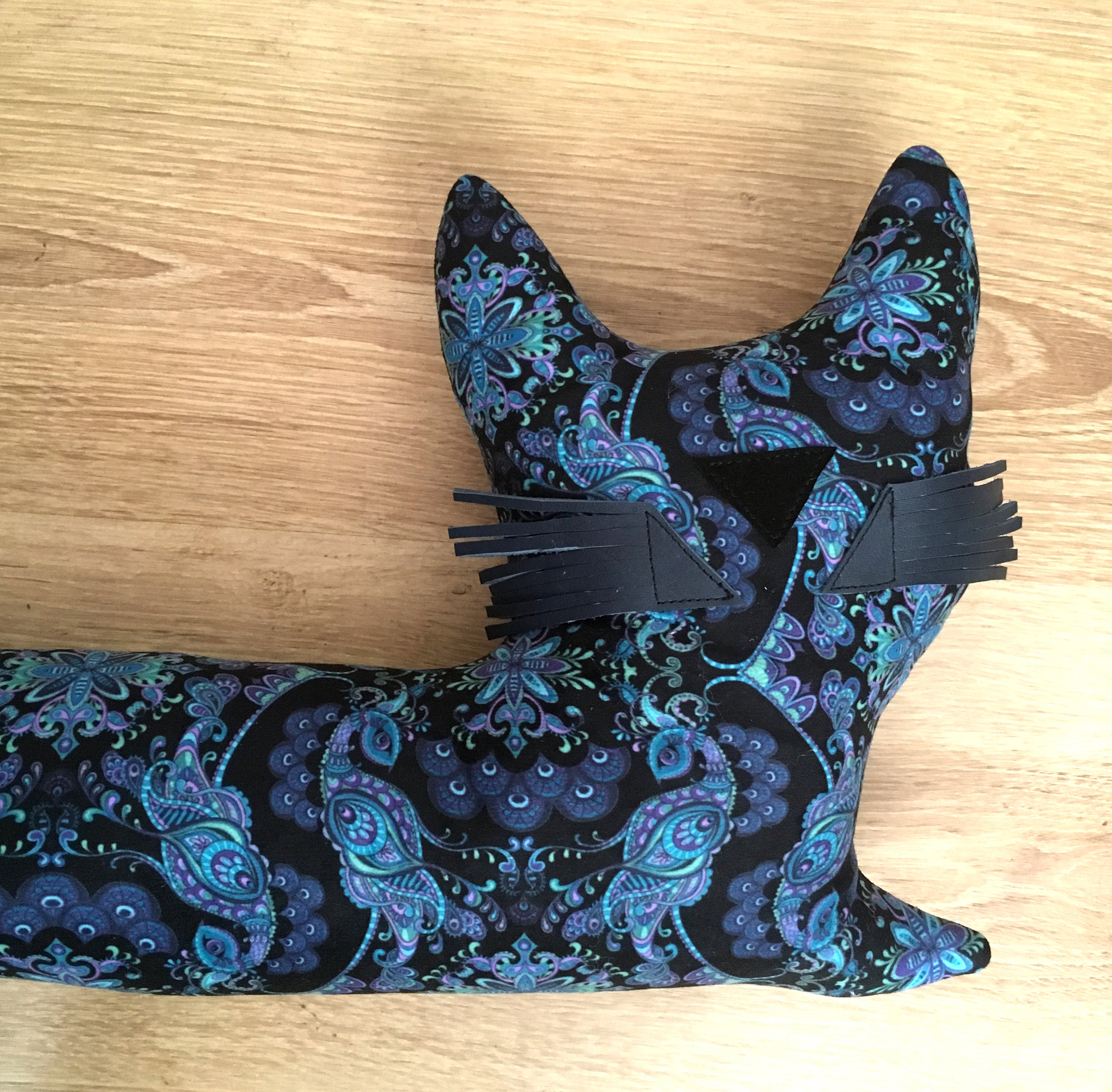 Cat Draft Excluder Blue Peacock Print Art Nouveau Fabric Etsy Uk